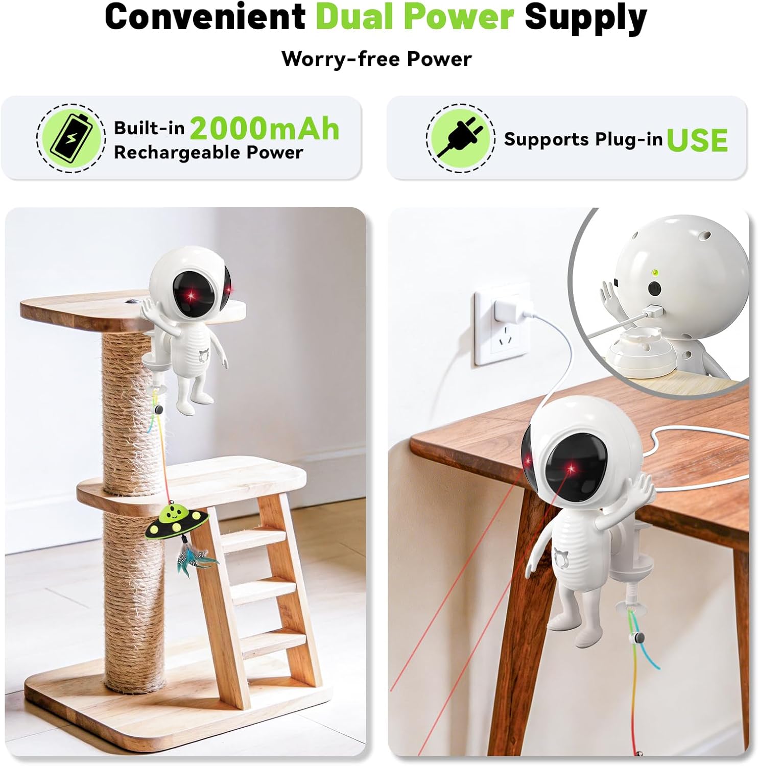 2-in-1 Cat Toy Adjustable Laser Coverage & UFO Dangler: Engage your cat's natural hunting instincts with our automatic cat laser toy. this cat toys for indoor cats features irregular, unpredictable...